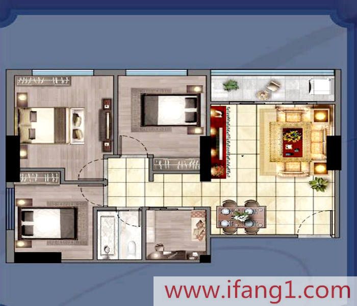 三房二廳二衛(wèi):98㎡